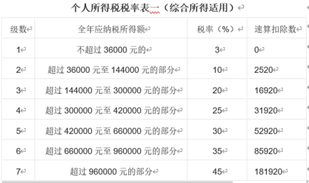 個人所得稅率是個人所得稅稅額與應納稅所得額之間的比例。分為3%至45%,共七檔如下: